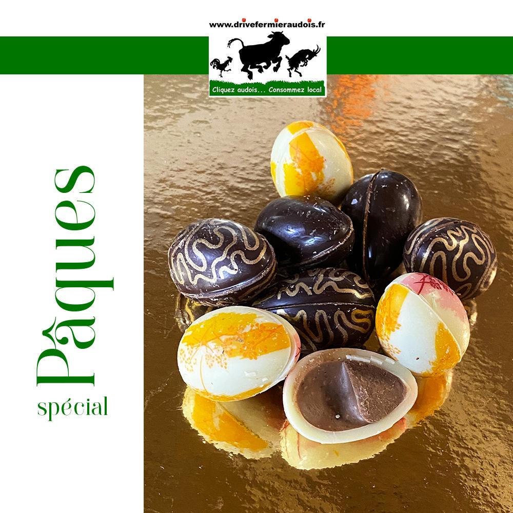Assortiment de petits oeufs décorés et fourrées gianduja