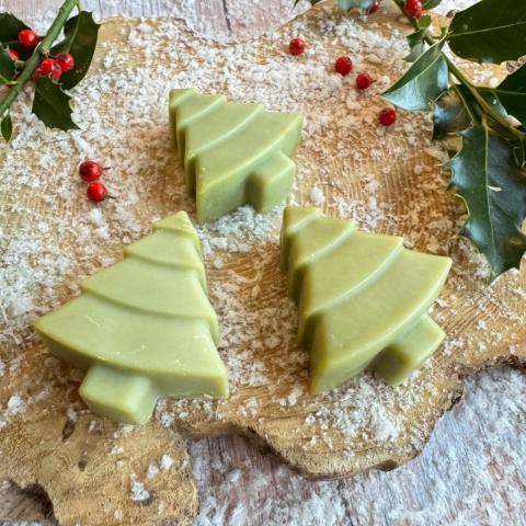 Savon en forme de sapin à la poudre de spiruline, visage ou corps, surgras 8%