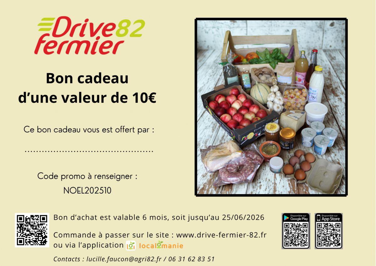 Pour les Fêtes, offrez un bon cadeau sur le site du Drive Fermier 82 !