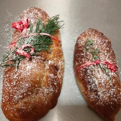 Entre panettone et brioche garnie d'écorces d'orange confites, raisins, noix et amandes.