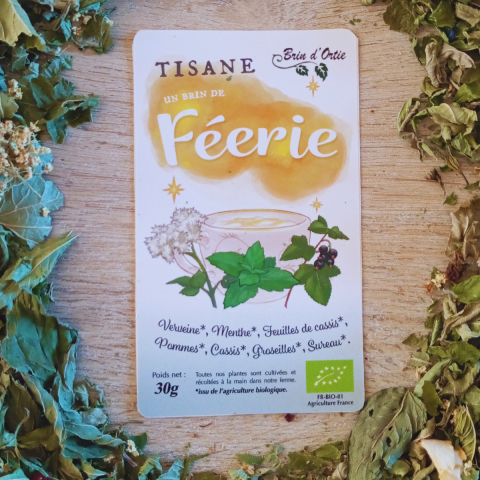 Feuille de cassis, frêne, ortie*, agastache*, menthe poivrée, reine des prés