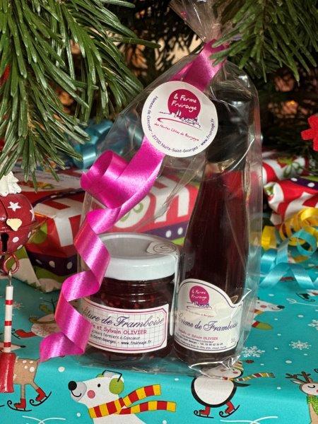 Cadeau Sachet Confiture Bio 50 g et Crème de fruits Bio 18% 3 cl Tout à la Framboise !