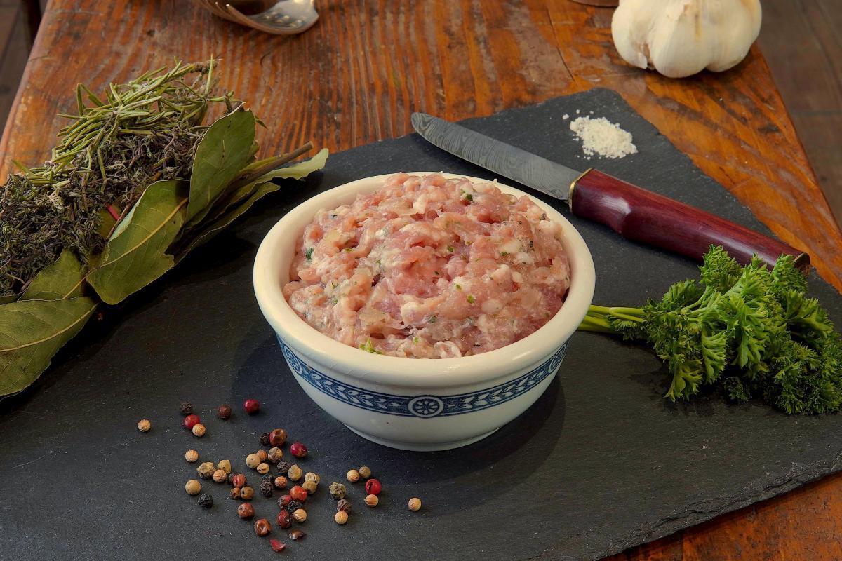 Chair fabriqué avec une recette maison et uniquement avec les produits de nos porcs, sans conservateur.