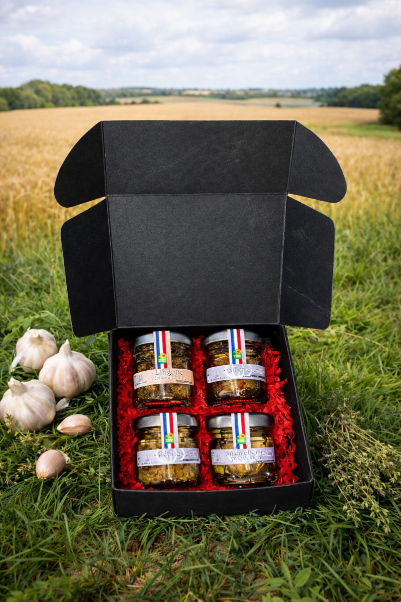 Offrez-vous une expérience gustative unique avec notre petit coffret découverte, présenté dans un petit pot élégant qui renferme toute la richesse de l’ail travaillé sous différentes formes. Une invitation à éveiller vos sens et à sublimer vos plats du quotidien !