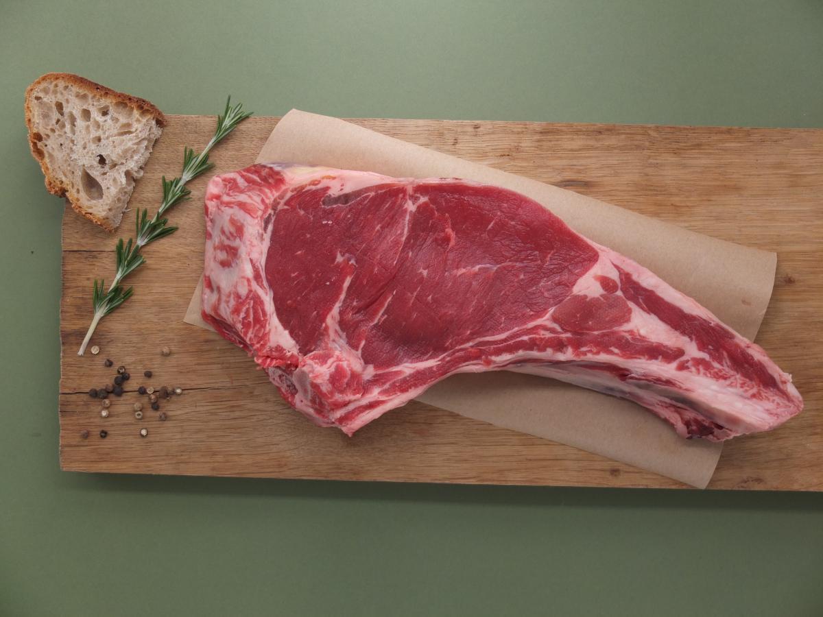 Côte de boeuf (viande charolaise). Boeuf né et élevé à la ferme, à Beurey-Beauguay, au coeur de l'Auxois.