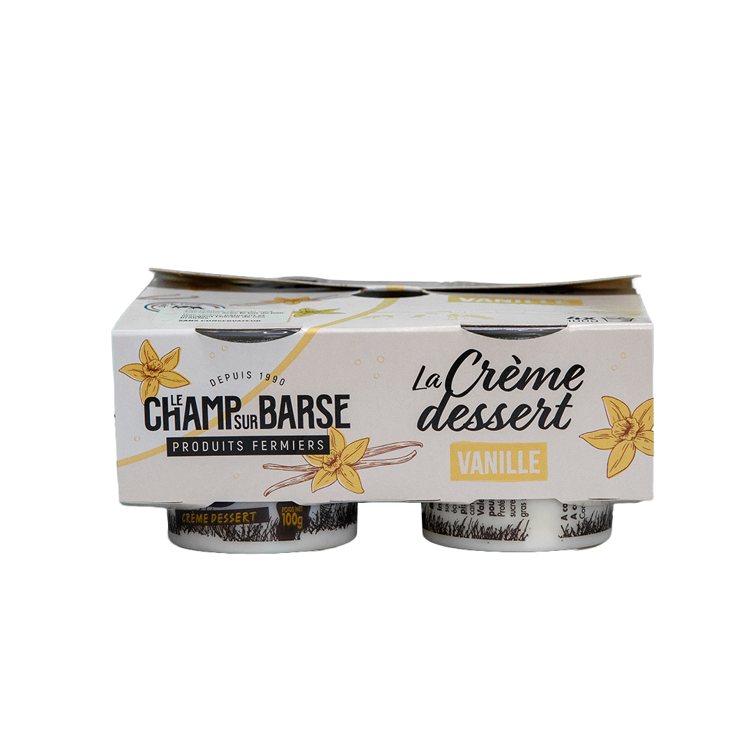 Crème dessert arome naturel de vanille bourbon avec grains.