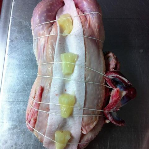Poularde farcie nature, abricot, pruneaux, ananas ou châtaignes 2.3kg à 2.6kg avec abats