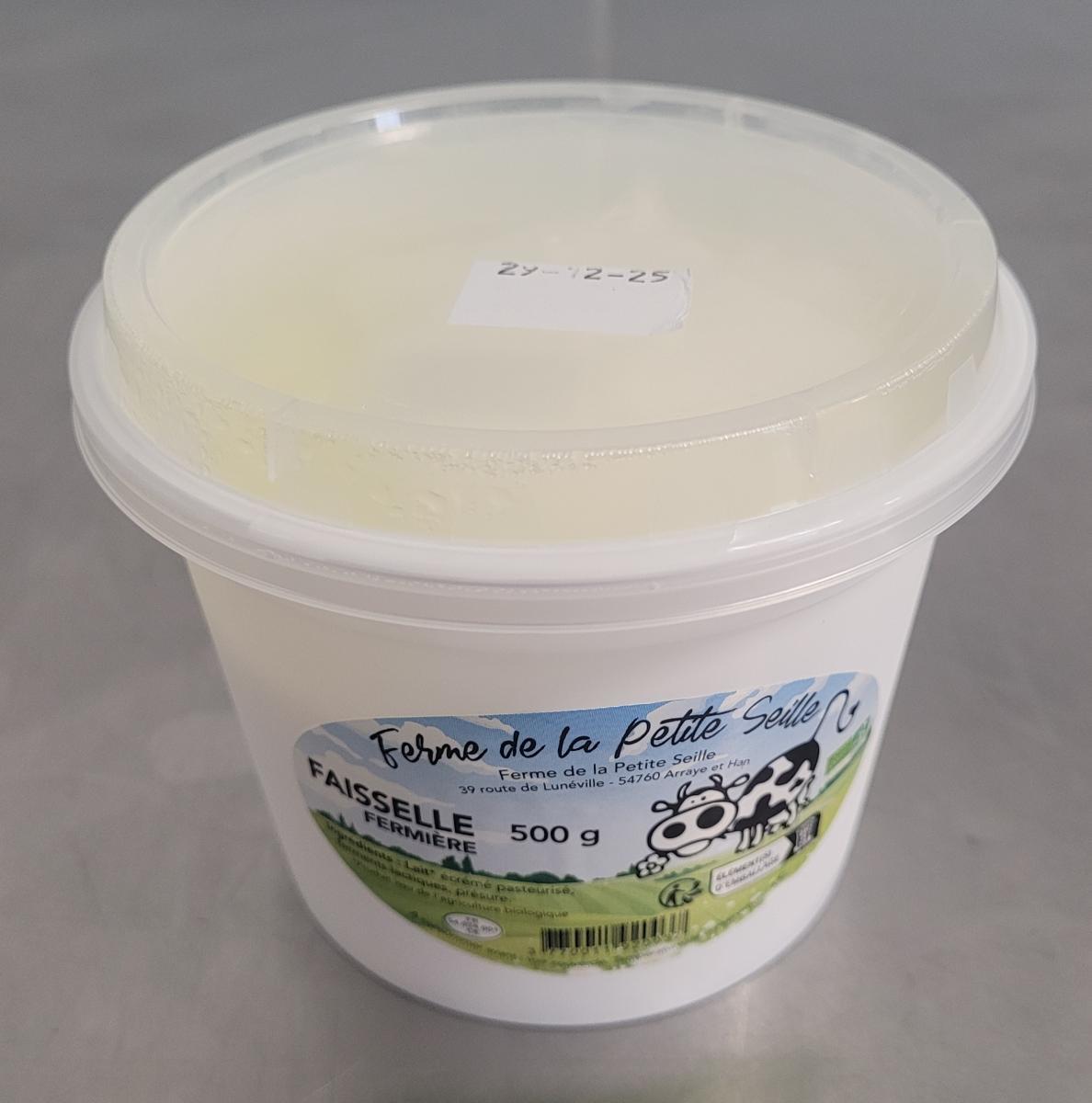 Faisselle au lait de vache écrémé et pasteurisé. Celle ci est moulée à la louche puis égouttée avant de la conditionner en pot de 500g.