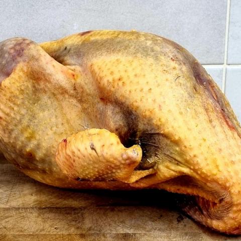 Volaille élevée à la ferme. Une pintade de 2kg est prévu pour 6 personnes. Elle est présentée entière, vidée, avec les abats et elle est prête à cuire. Comptez 2h pour la cuire au four ou en cocotte avec par exemple du choux et des carottes.