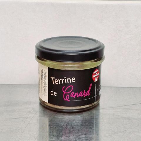La terrine de canard se présente en bocal qui se conserve à température ambiante. Il suffit de la mettre au frais la veille de les consommer.