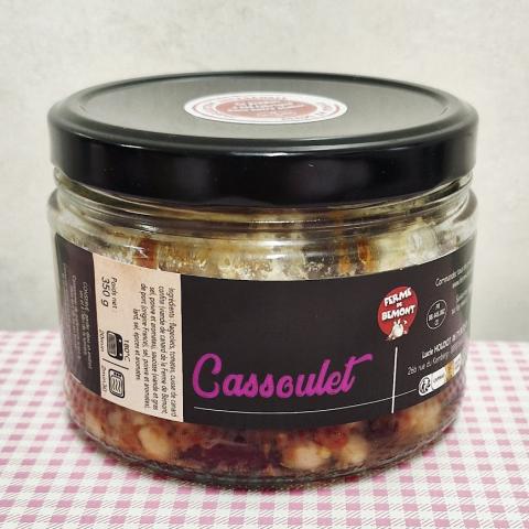 Cassoulet au canard : flageolets, tomates, manchon de canard confit, saucisse et lard.