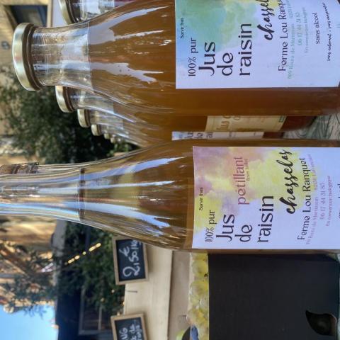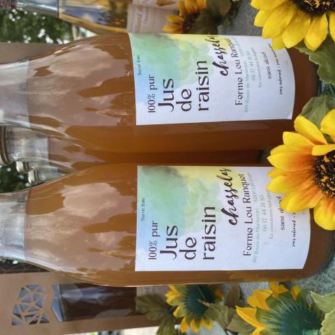 Jus de raisin blanc chasselas bio 100% pur jus sans sucres ajoutés issu de notre exploitation à Lafrançaise
