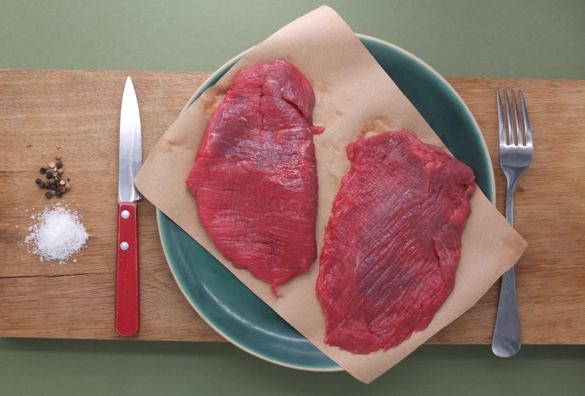 Steaks dans le rumsteak, conditionnés par deux, (viande charolaise). Boeuf né et élevé à la ferme, à Beurey-Beauguay, au coeur de l'Auxois.