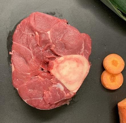 Le jarret de veau est coupé en tranche de 2 à 3 cm d'épaisseur.