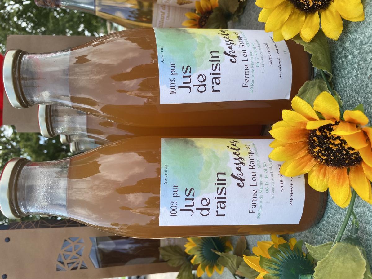Jus de raisin blanc chasselas bio 100% pur jus sans sucres ajoutés issu de notre exploitation à Lafrançaise