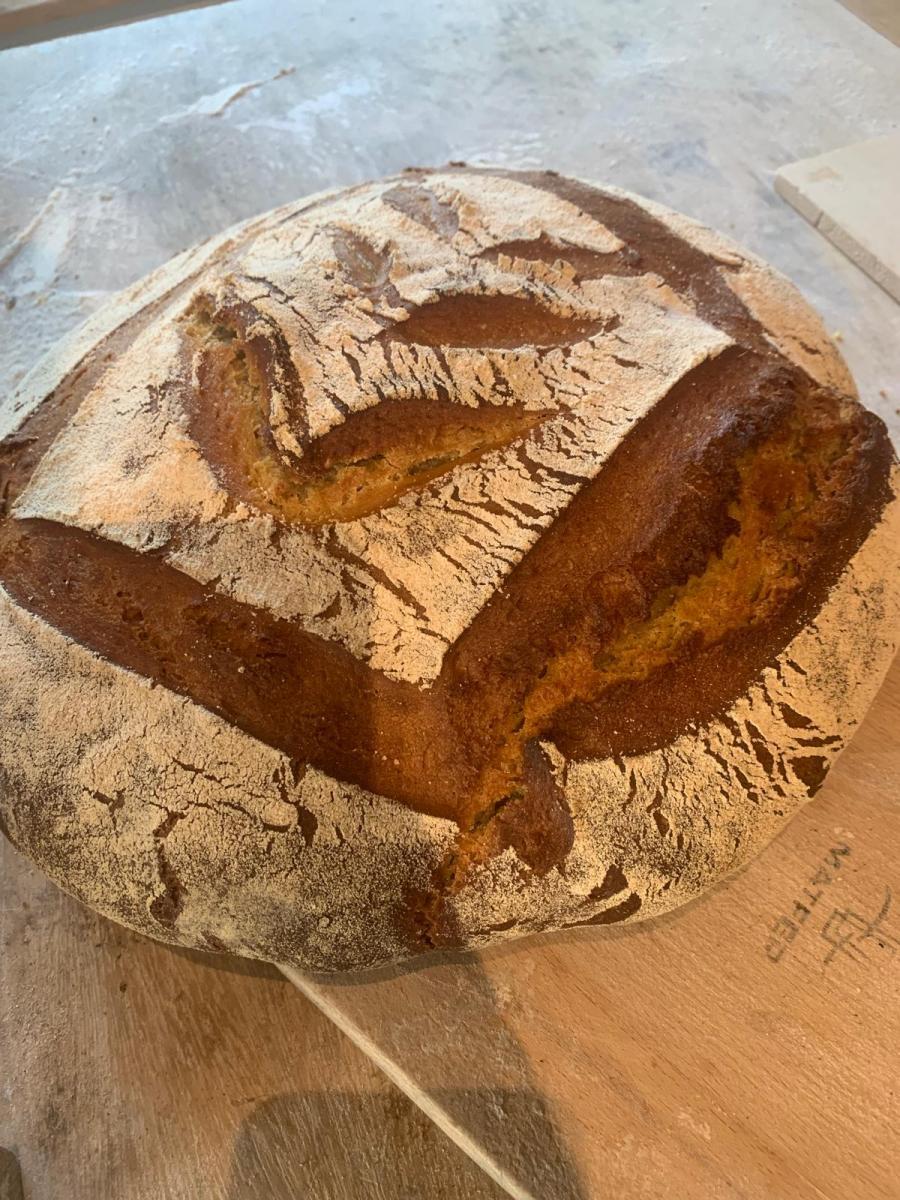 Farine de Petit épeautre (Engrain, Variété Noir de Turquie), Levain, sel, eau.