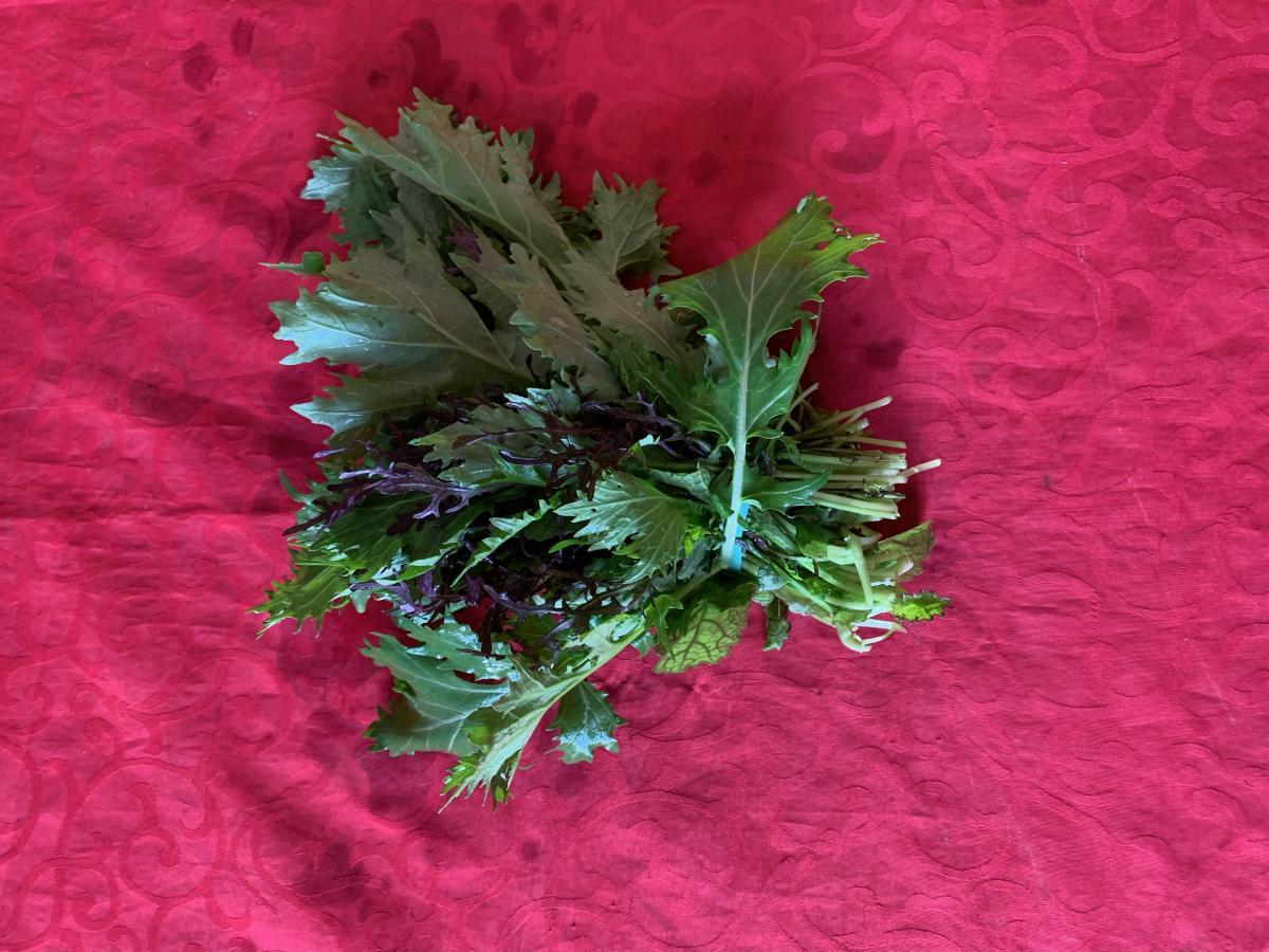Botte mélange pousses asiatiques composé de moutarde rouge, mitzuna, roquette et cresson aliénois pour donner du gout et de la couleur à vos salades