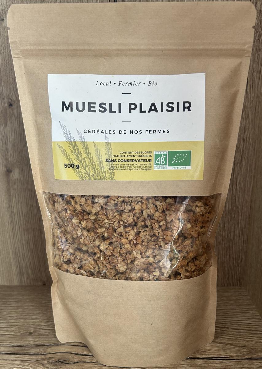 Ce muesli fermier est élaboré avec des céréales bios (avoine*, blé*, seigle* et petit épeautre*). Elles sont cuites avec du miel et de l'huile bio, pour apporter croustillant et plaisir sucré.