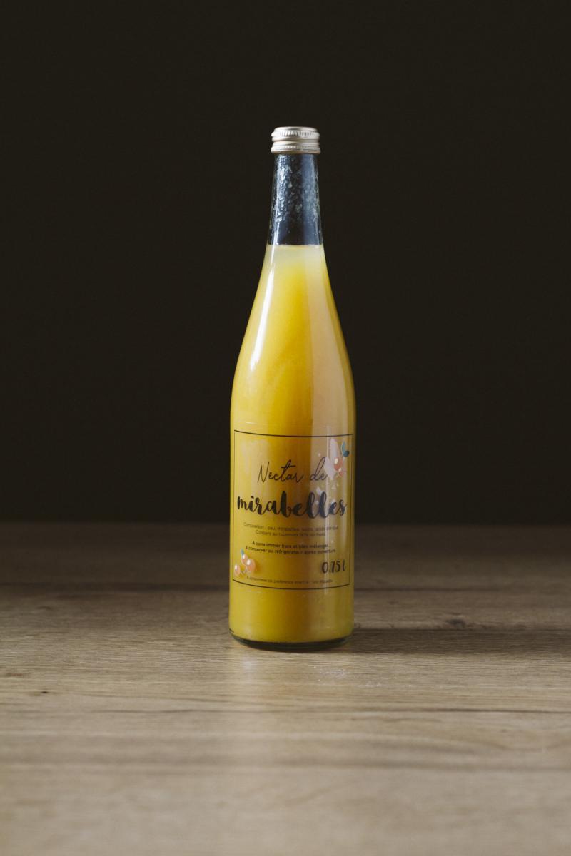 Le nectar est composé de 50 % de fruits frais. Bien frais ce nectar est idéal pour le petit déjeuner, le goûter ou pour un apéritif original vous pouvez le mélanger avec de l'eau de vie de mirabelles ou du rhum. L'alcool est à doser en fonction de vos goûts !