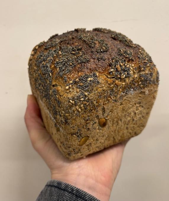 *farine de froment, * farine de seigle, *farine d’épeautre, *farine de sarrasin, *lin brun, *pavot, *graines de sarrasin, *tournesol, *millet, *levain naturel, sel