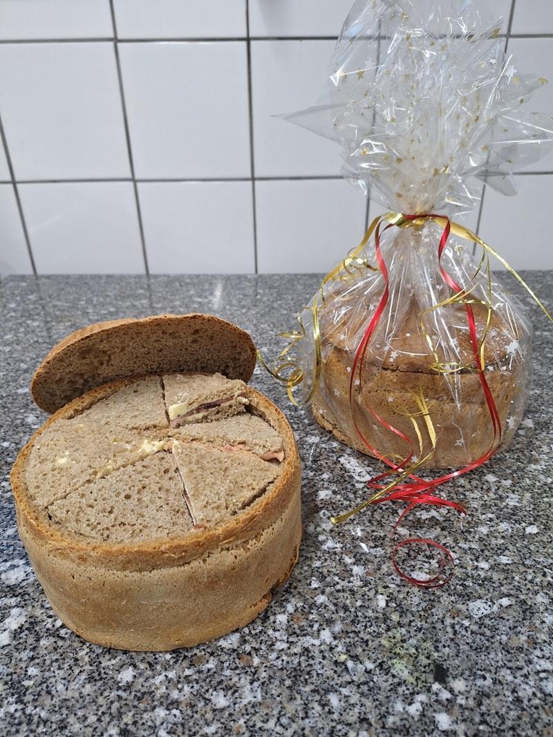 Pain surprise pour 6-8 personnes, ( 24 toats environ) avec un pain fait maison avec notre farine semi-complète moulue sur notre ferme.
