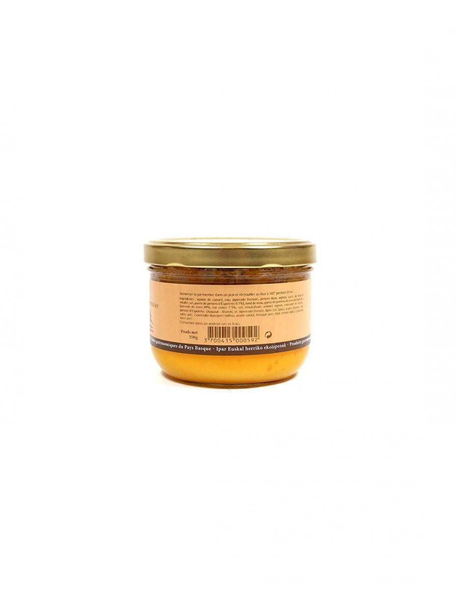 Une recette originale et gourmande pour un repas convivial et chaleureux: le parmentier de canard ou le petit cousin du Sud Ouest du hachis parmentier! De la purée de pommes de terre, sur un lit de viande de canard mijotée à la piperade et assaisonnée au piment d'Espelette... Nos spécialités gastronomiques sont cuisinées artisanalement avec des ingrédients issus de notre ferme et soigneusement sélectionnés chez les paysans de notre vallée. Fidèles à nos recettes familiales, nous n'ajoutons ni colorant ni conservateur. Nous portons un soin tout particulier aux temps de cuisson pour préserver les textures et les goûts.