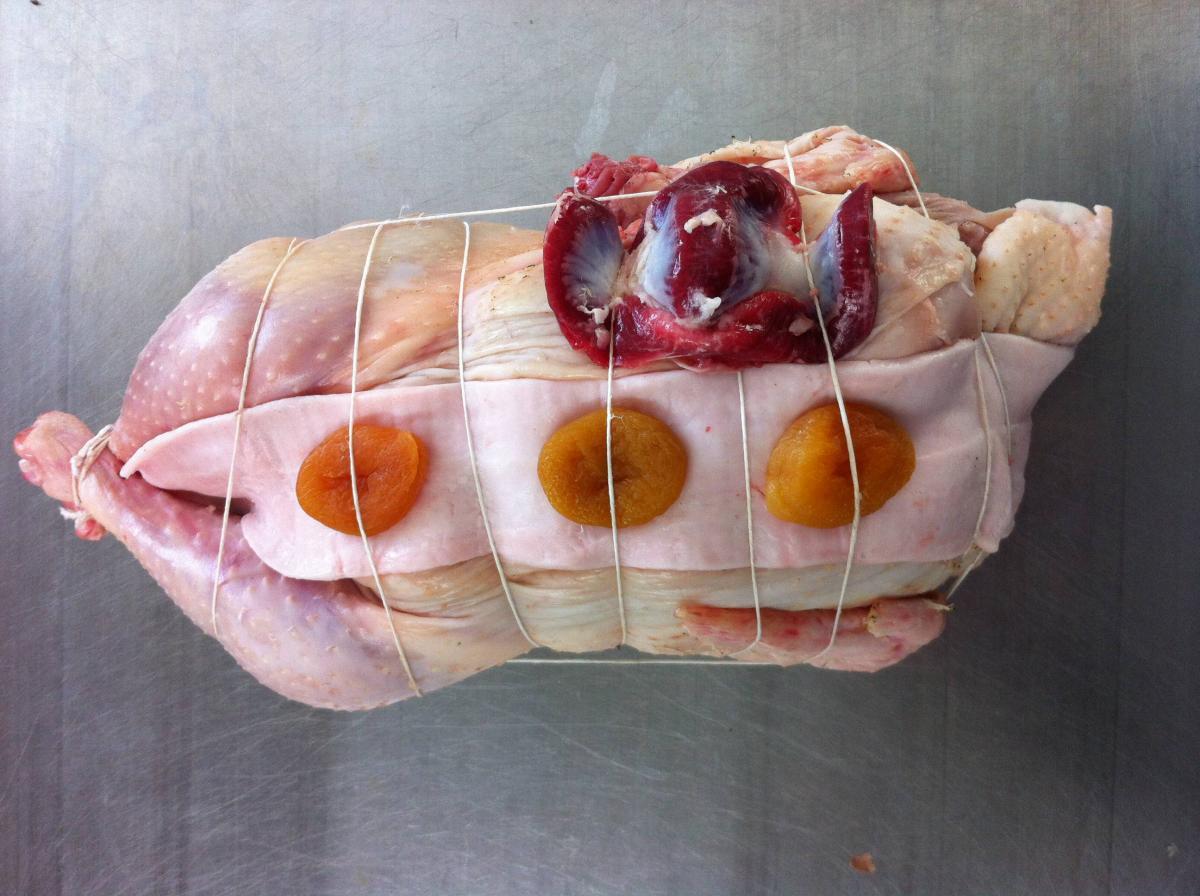 Poularde farcie abricot, châtaignes, pruneaux, ananas ou nature 2.7 à 3kg avec abats