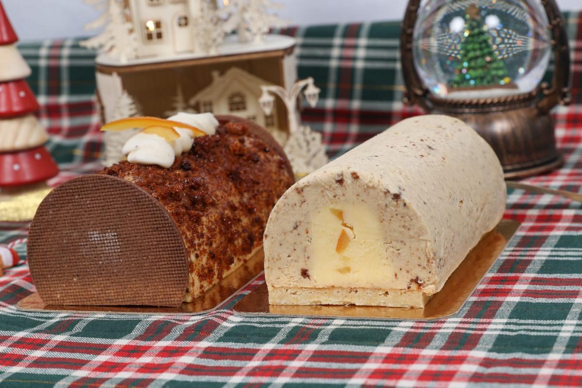 Composée de sa crème glacée pain d'épices @gargamielapiculture, insert sorbet orange et oranges confites et un biscuit Joconde légèrement imbibé d'un sirop café et armagnac à l'orange Distillerie Denoix