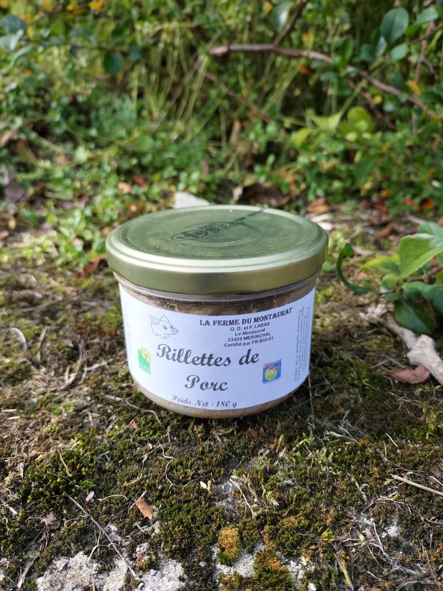 Rillettes de porc fabriquées à base de viande de porcs BIO issus de notre élevage.