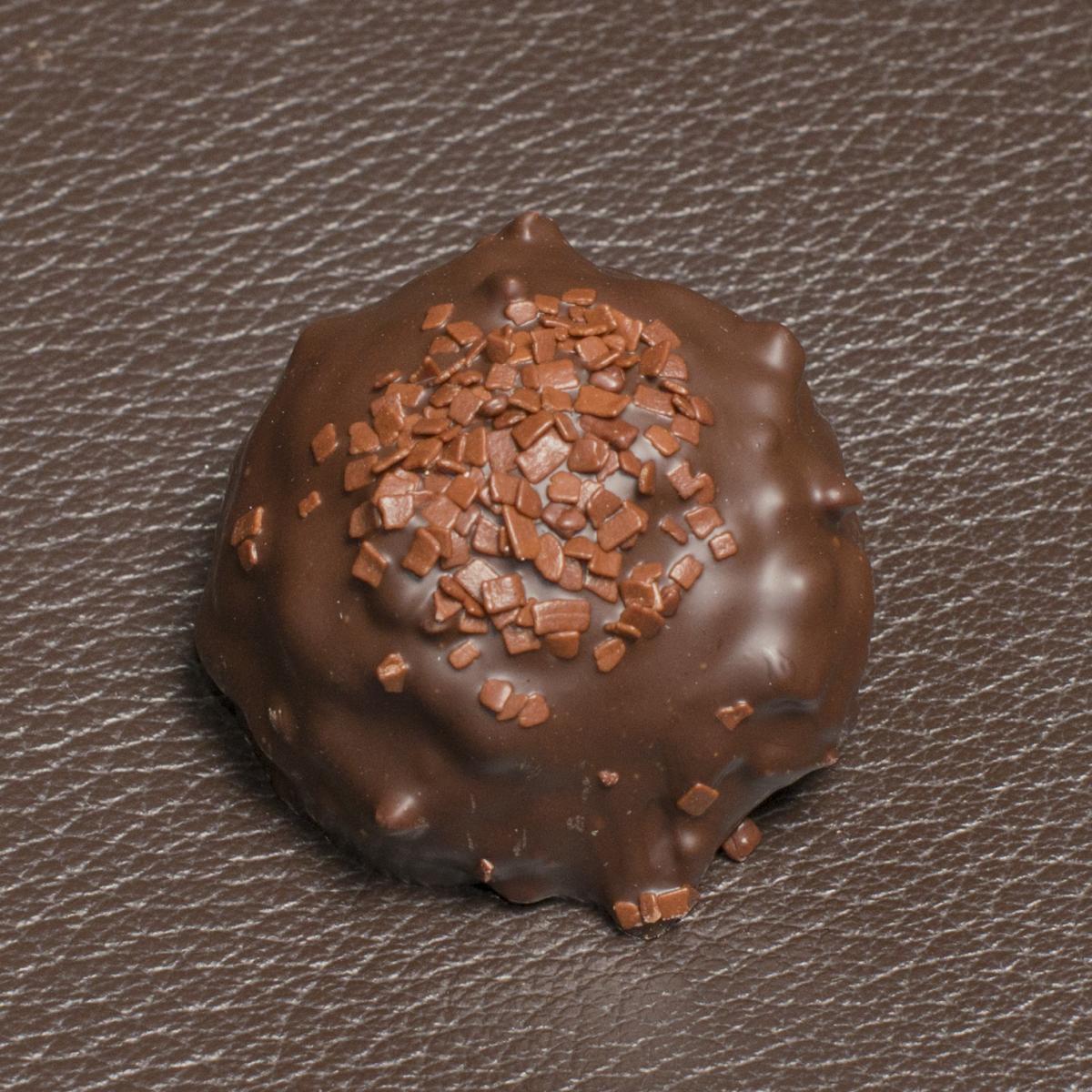 Composition: Beurre de cacao 64% minimum, pâte de cacao, sucre, émulsifiant : lécithine de tournesol, arôme naturel de vanille. Praliné : AMANDE, NOISETTES, huile d’AMANDE raffinée, lécithine de SOJA, arôme vanille. Farine de BLE, sucre, BEURRE, extrait de malt d’orge, émulsifiant : lécithine de SOJA, poudre à lever : carbonates de sodium.