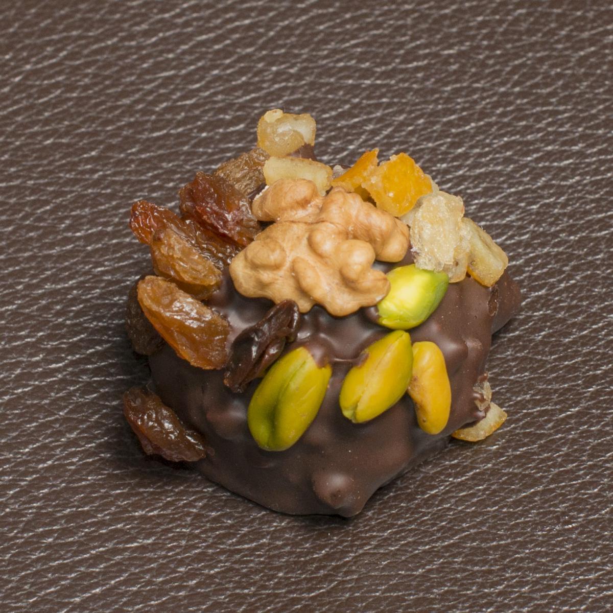 Noix de Grenoble, Pistache, raisins de Corinthe, Oranges confites.
