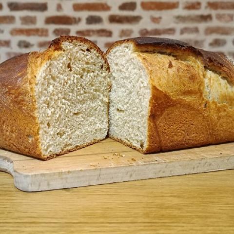 Ingrédients: Farine T65, eau, levain, beurre, oeufs, poudre de lait, levure, miel et sel.