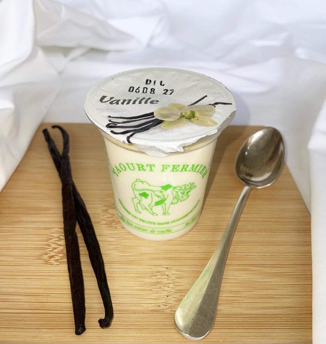 Yaourt fermier de la ferme Gillot au lait entier pasteurisé de vache. Yaourts sucrés, à l'extrait de vanille de Madagascar.